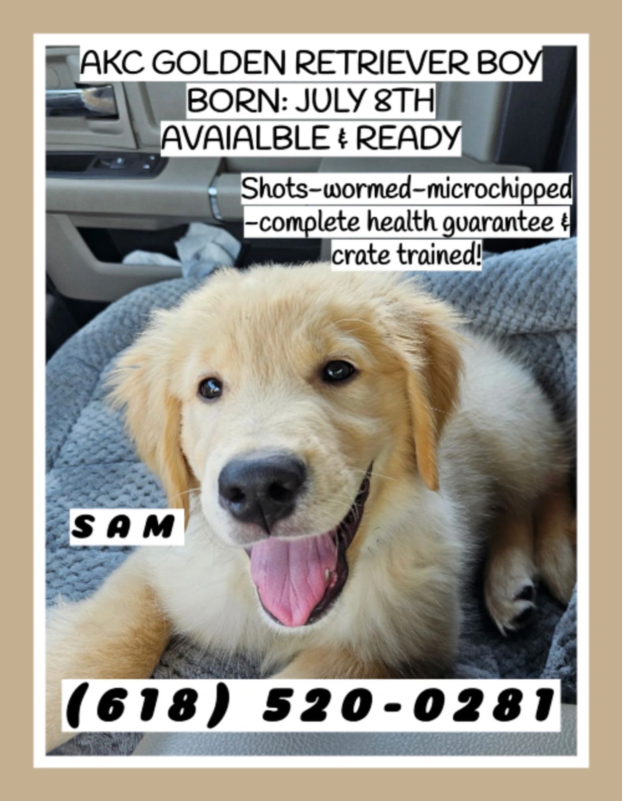 AKC GOLDEN RETRIEVER PUPS. ASK GINA ABOUT THEM EMAIL OR TEXT!